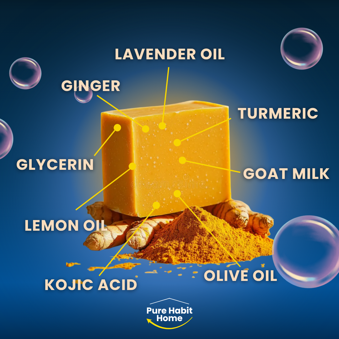 100G Turmeric Hand Made Soap, Lemon Kojic Acid Soap, Shower and Facial Soap Deep Cleaning for Face Body Skin Care